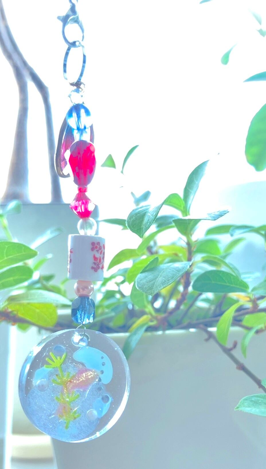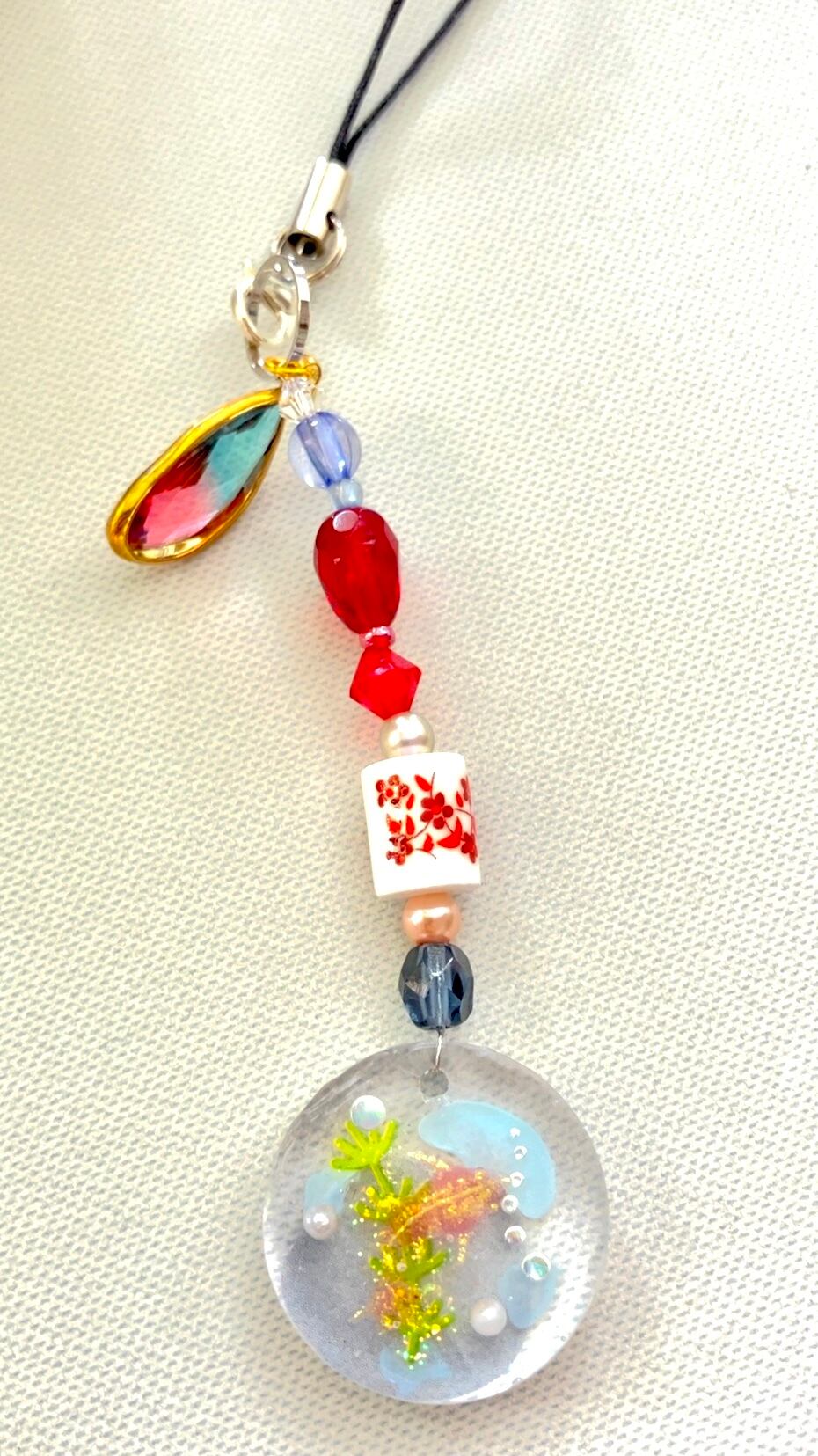 持ち運べる小さな水槽をイメージして作った和風なストラップですϵ( 'Θ' )϶