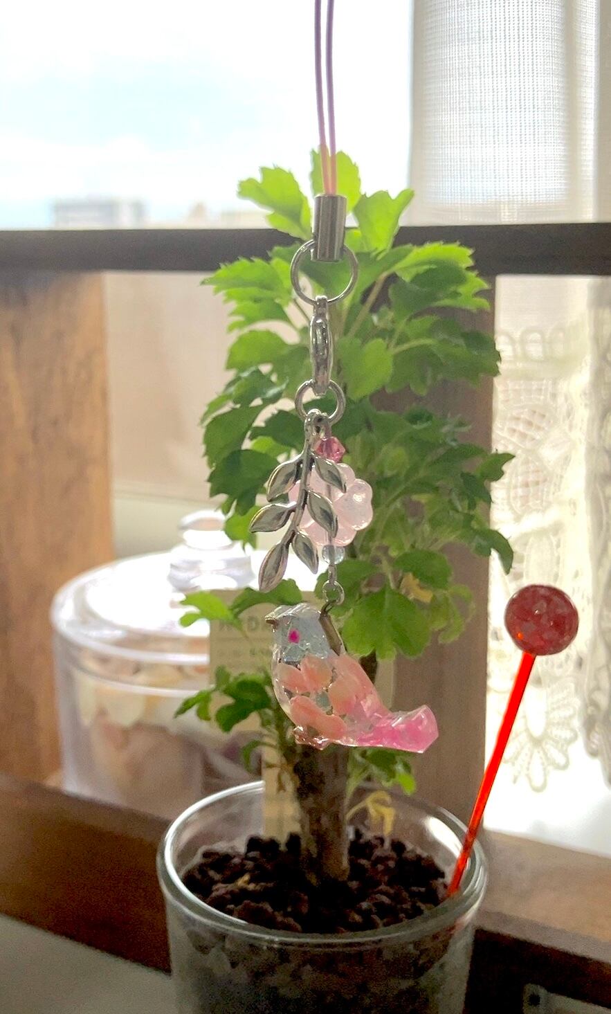 つぶつぶ模様の翼がチャームポイントの小鳥ストラップです♡